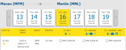 For the Filipinos, there are direct flights from Manila to Macau. Please refer to the websites of Philippine Airlines, Cebu Pacific and Air Asia.
