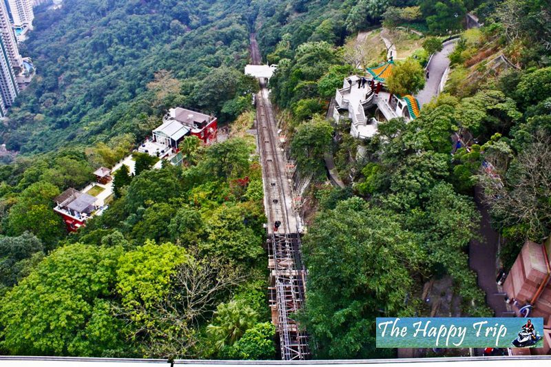Taking the Peak Tram is in itself is an experience. The slopes were very steep and somehow it gives you a feeling of riding a roller coaster that is just big and slower and more stable of course. The Peak Tram’s route from Central district to Victoria Peak covers a distance of about 1.4 kilometers and a height difference of just under 400 meters. The line has two pronounced curves, one to the left immediately after leaving the lower terminus, and the other to the right in the upper half of the ascent. The gradient also varies considerably throughout the ascent. It is a single track route and a passing loop, with two trams.