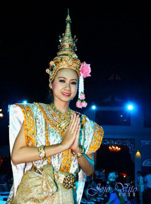 After the dinner, I just stood up and try to look around and start to taking pictures of course. I just noticed a change of beat to the music. Soothing gives way to a soaring and more festive tempo as a line of gorgeously attired Northern Thai dancers come into my view. The girls, and boys wend their way  around the floor-space so everyone also has a perfect view. But I was in the perfect place at that time—at the entrance. I was  mesmerized by the  moves of the dancers as they weave intricate patterns in the air with their hands and describe complex circles of movement with their feet. The music was haunting and soothing. I felt like being transported back through the centuries to the height of the Lanna Kingdom of old.
