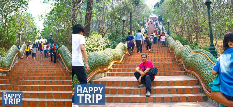 The Wat Phra That Doi Suthep can be reached by road from Chiang Mai. From the car park at the temple base, visitors must climb 309 steps for free to reach the temple complex. The easier option was taking the tram. Entry to the temple on the tram would cost 30 Thai baht for foreigners (or 50 baht if you would like a two-way tram ticket included). The temple is free for the Thai nationals.