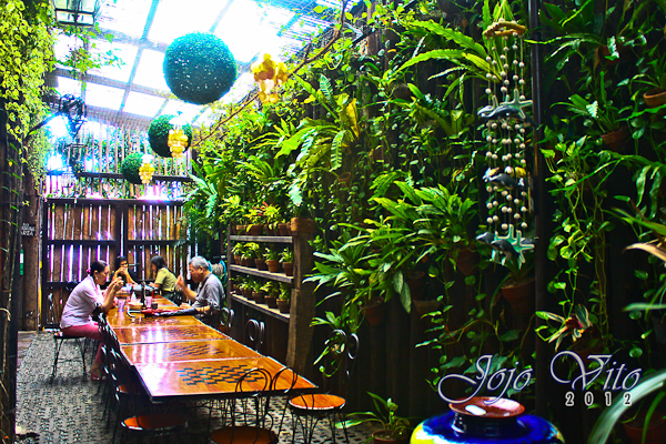 The moment you enter Pan de Amerikana, it seemed that you will be transported to a different world. Inside the restaurant is a Filipino-looking al fresco garden with colorful decors displayed upside down. I had seen Pan de Amerikana way back when it was featured on TV but the feeling was different when you’re inside the place. I always had my camera with me so I took the moment to take plenty photographs of the different details found inside the restaurant such as the upside down table, the upside down Land Cruiser outside and a lot more.