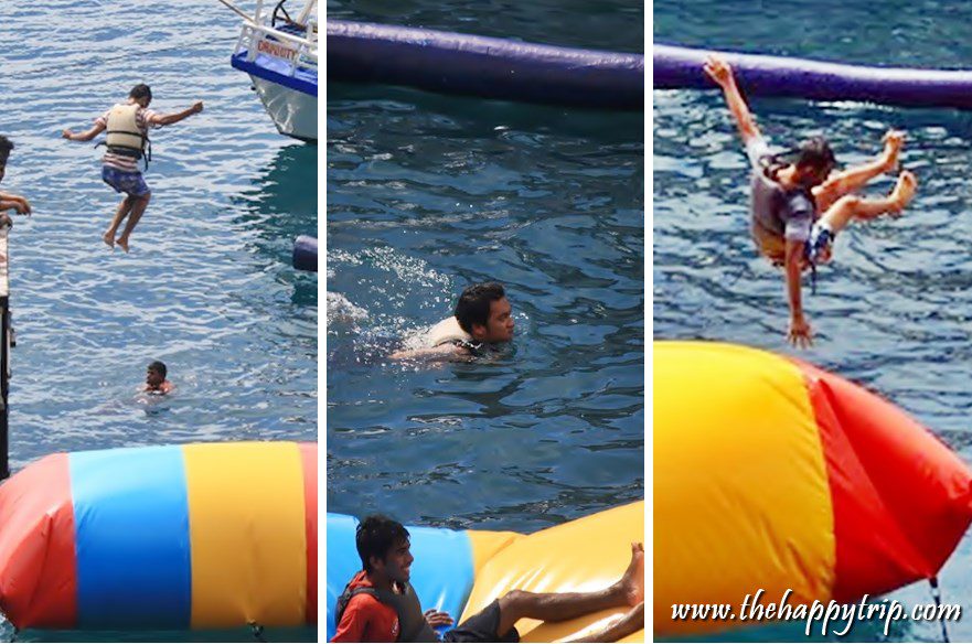The water blob looked like a giant balloon. At Maxima I enjoyed seeing one person lying on end and another jumps on the opposite side. The person lying would then be pushed up in the air and into the water.
