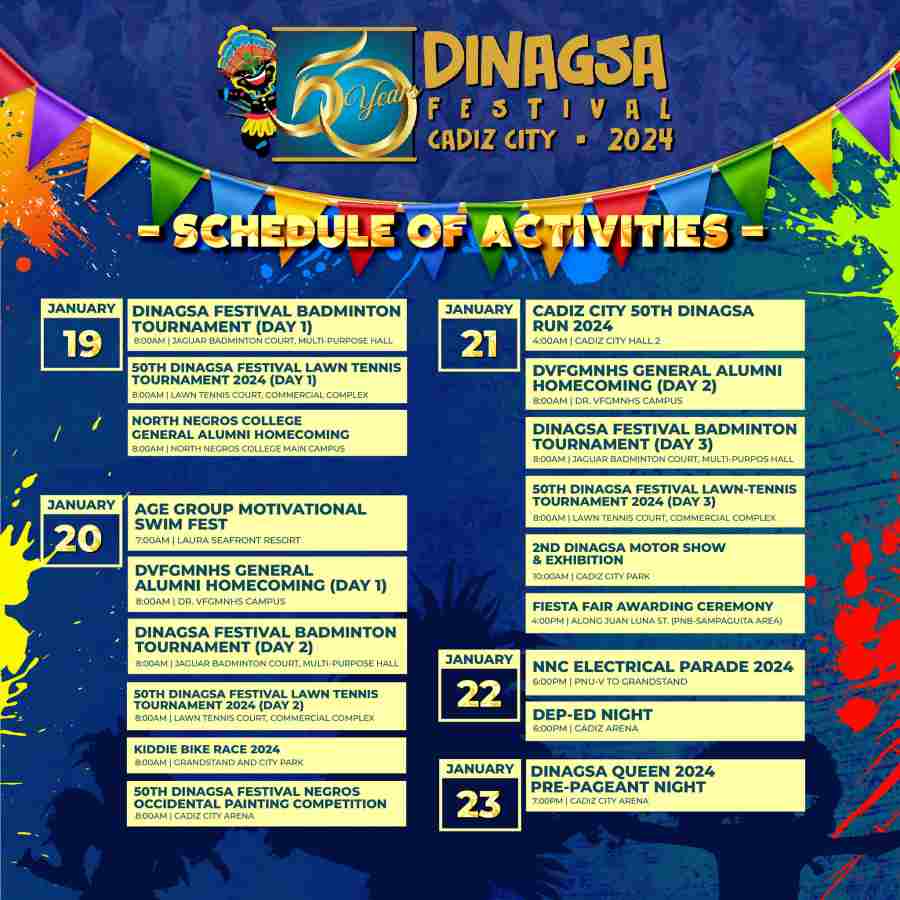 Dubbed as Dinagsa Festival, was the brainchild of some of the members of the Samaria House Council of Cadiz City, a lay religious organization of the Catholic Church.”Dinagsa” was coined after an event in the past where several whales were drifted on the shores of the said city; the word “dagsa” means driftage. This is also why Cadiz city is tagged “The City of Whales“.