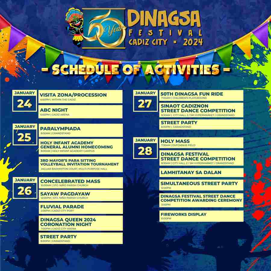 “Dinagsa” emerged as a response from the church council to a prevalent local custom where, instead of paying homage to their Patron Saint, residents engaged in activities like gambling and cockfighting. In a proactive effort to redirect the focus towards expressions of gratitude and praise, the founding fathers of Cadiz Ati-Atihan, led by Msgr. Vicente Salgado, the then Parish Priest of the Sto. Niño Parish sought to create a celebration that truly honored their Patron without the need for such activities. This initiative marked the historic inception of the Cadiz City Ati-Atihan Festival.