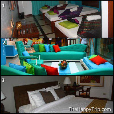 1. Hotel’s Spa Located at the second level, 2. Colorful furniture at the main lobby, 3. one of the rooms