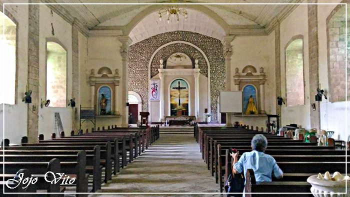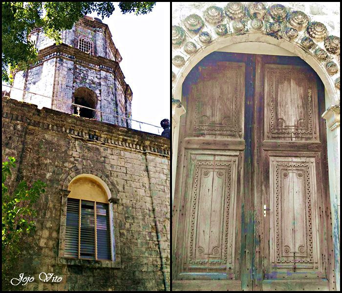 The main arched entrance to this single-naved church was beautifully decorated by floral sculptures. The three-story bell tower was attached to the church; its lowest floor was quadrilateral while the upper floors were hexagonal.  Arched windows pierced the tower and a domical roof crowned the whole structure.  Again, I don’t like the repair made in the lower portion of the bell tower especially the use of jalousie window.