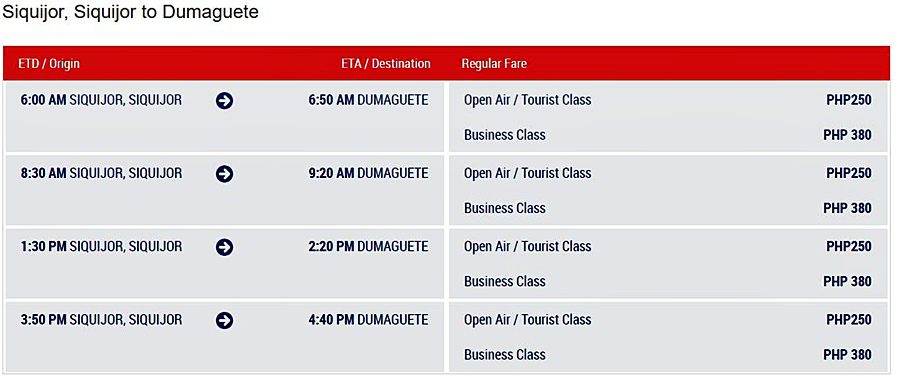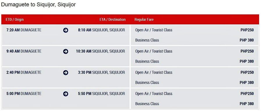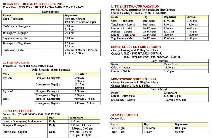 Below are the schedules of various shipping companies serving Dumaguete and Siquijor.