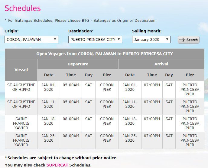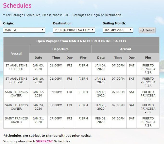 2Go Travel – Schedule Manila (Pier 4) to Puerto Princesa