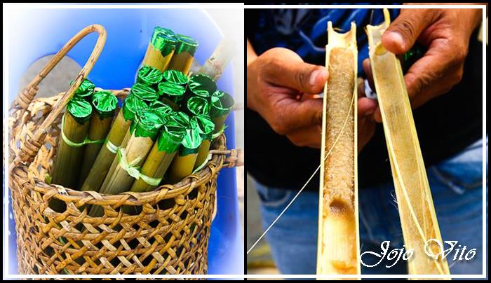 I was intrigued the first time I saw the tinubong which leads me to try it. Tinubong is a delicacy that is very popular in the entire Ilocos Region. The name of this delicacy is derived from its container, an internode of buho (bulo in Ilocano) with the node at one end, which is called tubong in Ilocano. This native delicacy is made of grounded glutinous rice, sugar, coconut milk, and some coconut meat. These ingredients are being placed in its container (tubong) then steamed. This delicacy can be served as a dessert or as a snack.