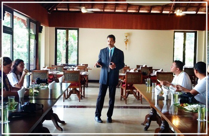 Mr. Vinod M M, Resort General Manager of the The Windflower Resort & Spa, Vythiri explaining about Sadhya