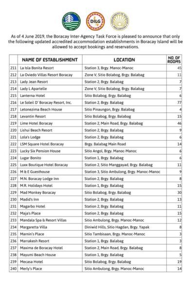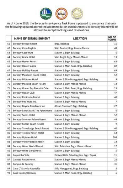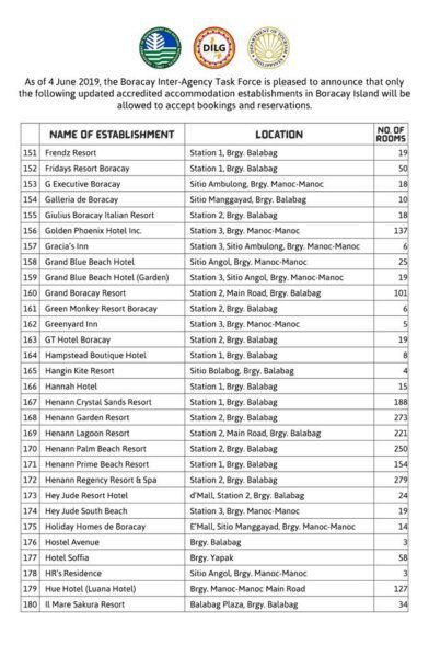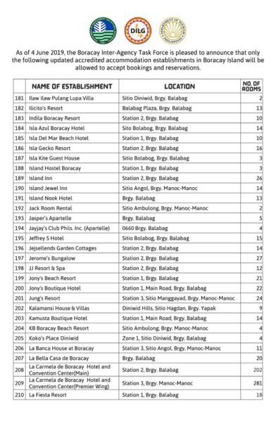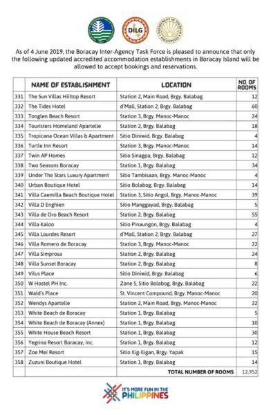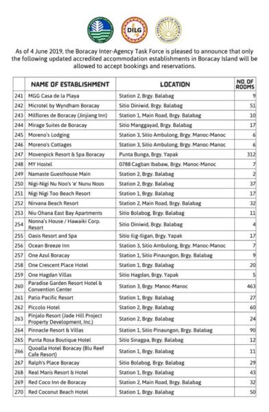LIST OF DOT ACCREDITED BORACAY HOTELS AND RESORTS