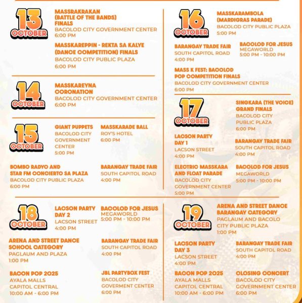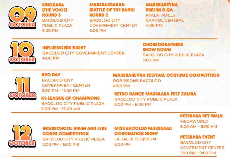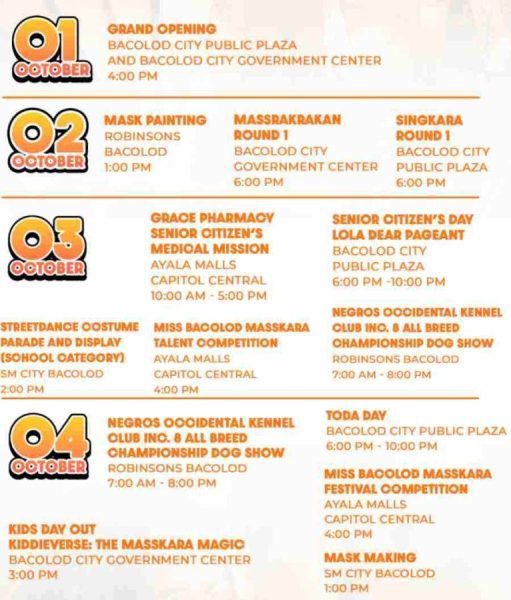 2025 BACOLOD MASSKARA FESTIVAL SCHEDULE OF EVENTS