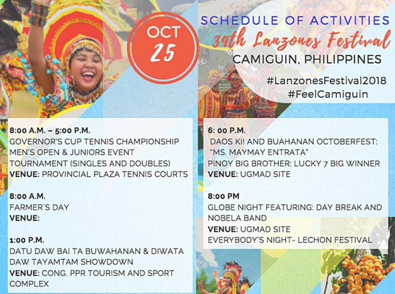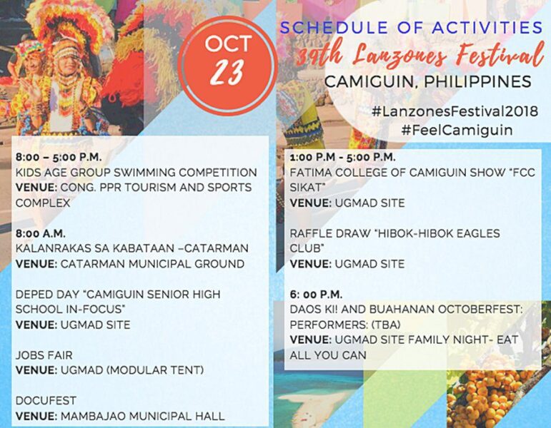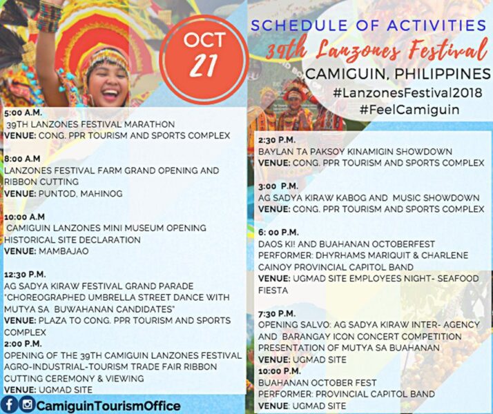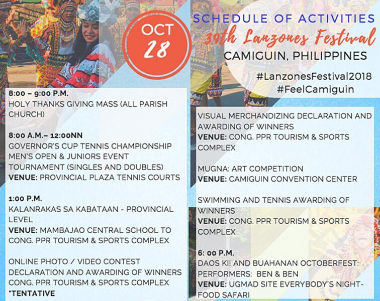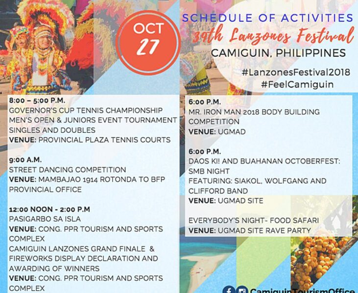 2018 Schedule of Activities, Camiguin Lanzones Festival