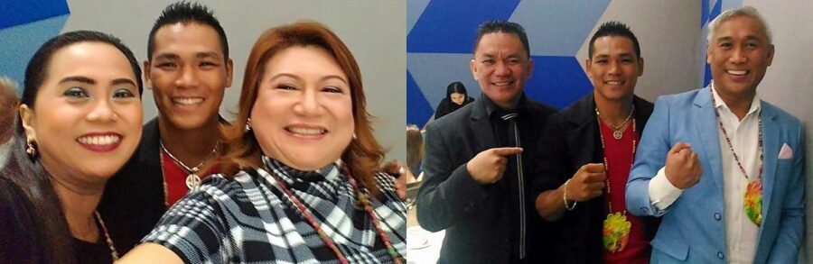 with my fellow judges having fun before the pageant. L-R :Arthur Villanueva ,World Boxing Organization (WBO) Asia-Pacific super flyweight champion Arthur “El Matador” , former Masskara Queen Vina Oca ,and Migo Adecer , GMA Star