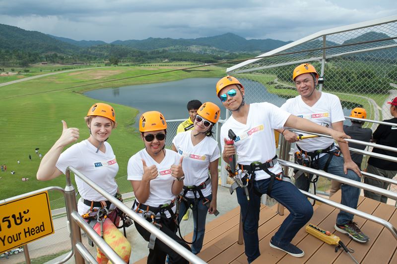 The TAT Newsroom Bloggers about to experience the  Zipline  to enjoy  the  panoramic 360 degree views of the tea plantations which is considered  one of the most beautiful Zipline routes in Chiang Rai.