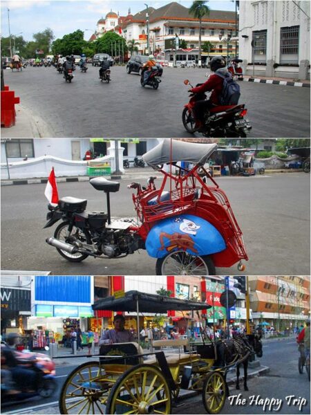 There are traditional horse-pulled carts, known as Andong, or Dokar, wait for tourists outside hotspots like the train station, the Kraton, and Malioboro. It would be best to negotiate first with the price before getting in.