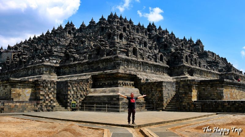 the author at the foot of the majestic Borobudur Temple