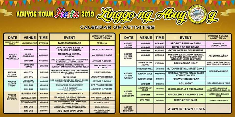 Among in the six provinces in Eastern Visayas Region, Leyte is one with three provinces: Biliran, Southern Leyte and Leyte. Abuyog is the municipality in the province of Leyte which the house of Buyogan Festival located. So when you’re from Manila, it stands 390 miles northwest to Abuyog.