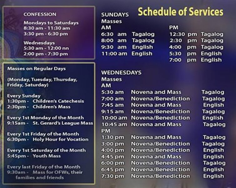 Listed above are the Mass and Novena Schedules.