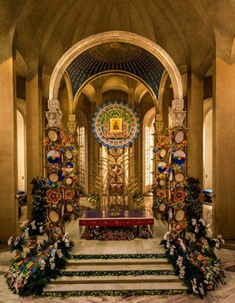 The icon enshrined at the top of the main altar originally came from Germany. It was brought to Ireland, then Australia by the priests of the Redemptorist Order. It was brought to the Philippines in 1906 since we were considered as United States territory then. The icon has the Papal arm in its paneling at the back.