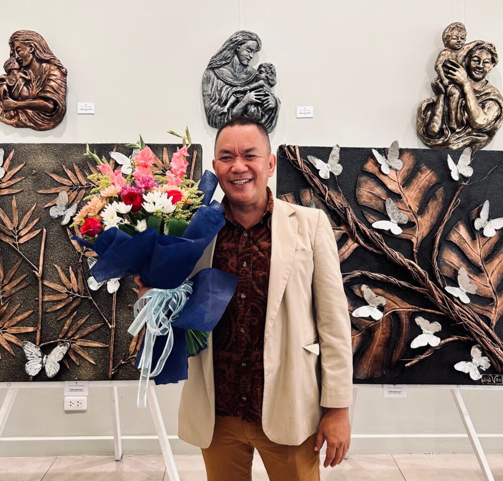 Jojo Vito, a Bacolod-based artist, celebrated his birthday with a bang by opening his one-man exhibit titled “Gilded Expressions” on March 22, 2023, at the Park Inn Hotel by Radisson Bacolod. The exhibit, which will run until June 30, features the artist’s latest sculptural pieces made of fiberglass, wall art mixed medium of organic materials and resin, huge jars, and his famous mask creations. The works are rendered in metallic colors, and some feature golden capiz, shells, barks, and twigs, all locally sourced from Negros Occidental.
