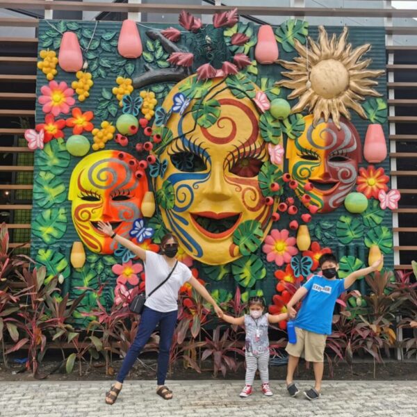 The central focus of the Masskara wall is the three giant masks adorned with colorful flowers. This symbolism emphasizes the happy disposition and hopeful spirit of the Bacolodnons. It conveys the message that the masks worn during the Masskara Festival do not conceal anything negative but rather represent the local community’s faith, goodness, and aspirations for a brighter tomorrow. As you gaze through the eye and mouth openings of the largest mask, you’ll be captivated by the floral motifs that embody the essence of Bacolod’s vibrant culture.