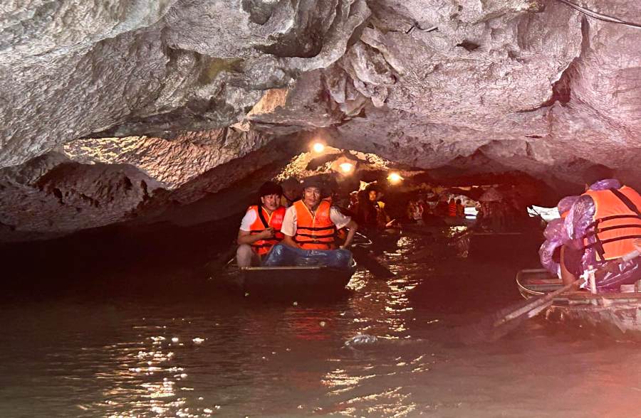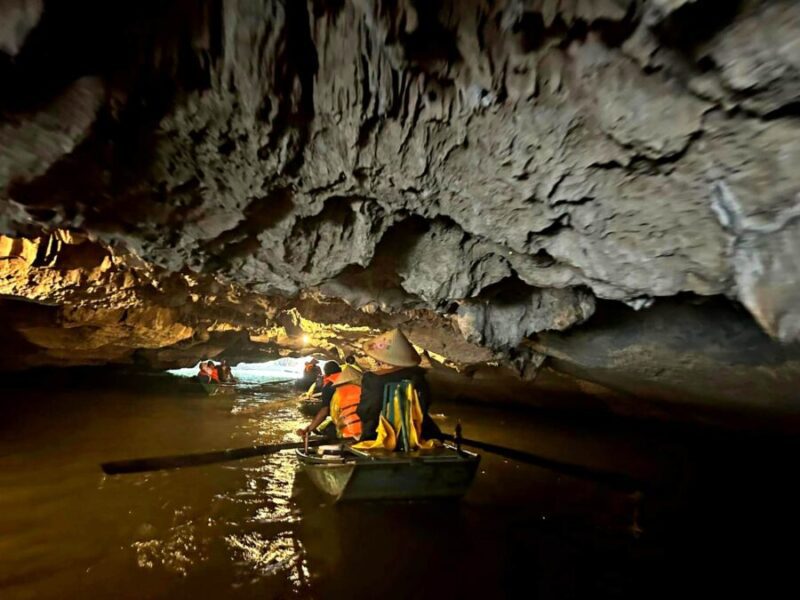 Take a leisurely boat tour along the Ngô Đồng River, where local boatmen expertly guide you through the breathtaking scenery of limestone karsts, rice paddies, and charming caves.