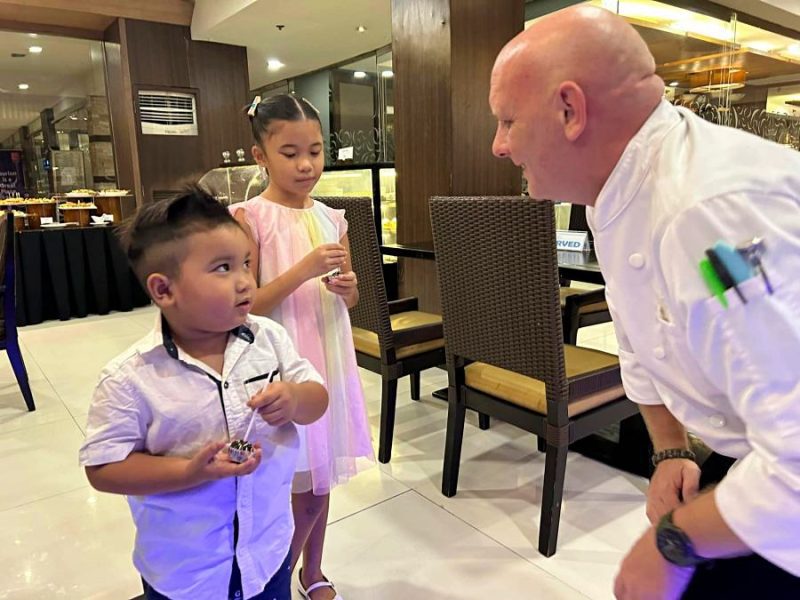 Executive Chef Chef Allen Alber having his time with the kiddie blogger Abby and Ynzo of AbbyandYnzo.com