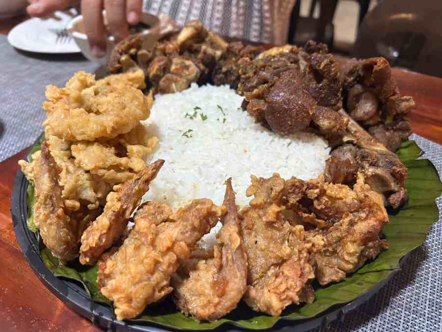 We were eager to explore the menu, which featured a range of seafood options and classic Filipino dishes. While some prices were slightly above what we typically paid, the selection was intriguing. After a quick discussion, we decided on the Si.Pud Platter for ₱1,499. This platter included calamari, buttered chicken, crispy pata, and rice—a combination perfect for sharing. The crispy pata, in particular, piqued our interest, and we couldn’t wait to dig in.