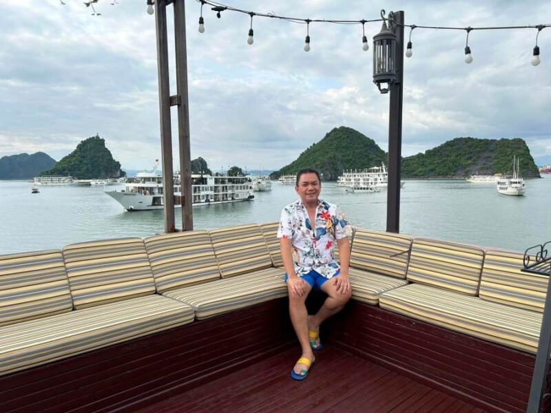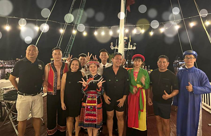 One of the most memorable parts of my Halong Bay cruise was the cultural night presentation onboard. As the sun set and the limestone karsts lit up, I enjoyed live traditional Vietnamese music and captivating dance performances while savoring delicious local dishes. Some cruises even offer themed shows like “Love in the Bay,” which beautifully blend modern artistry with the natural beauty surrounding us. It was a perfect way to connect with Vietnam’s rich culture, making the evening truly special and unforgettable.