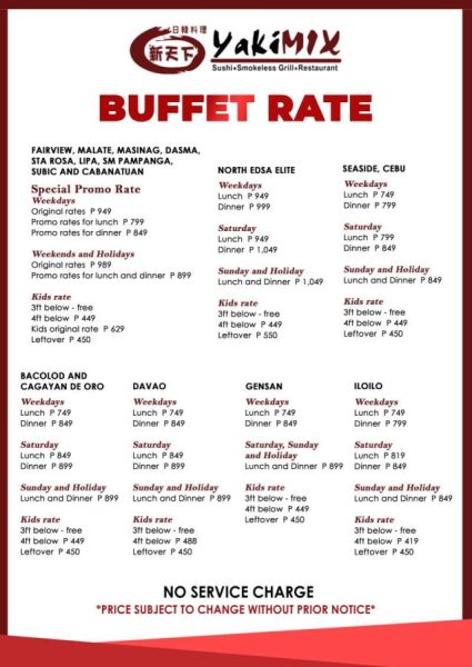 Based on the latest available tariff, here are the current buffet rates for Yakimix SM City Bacolod: